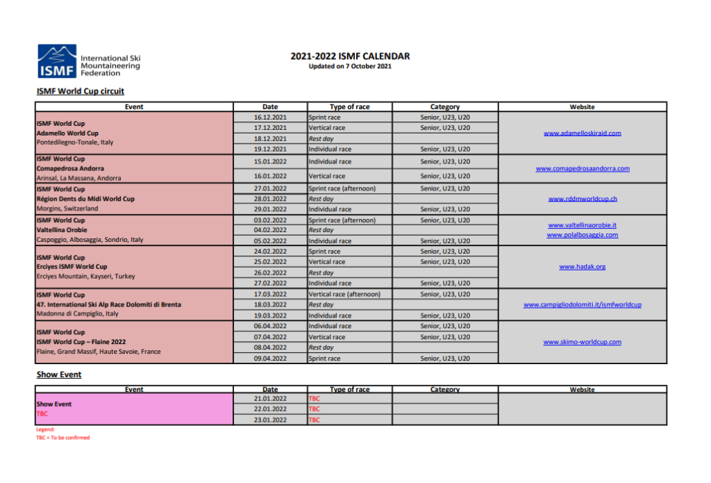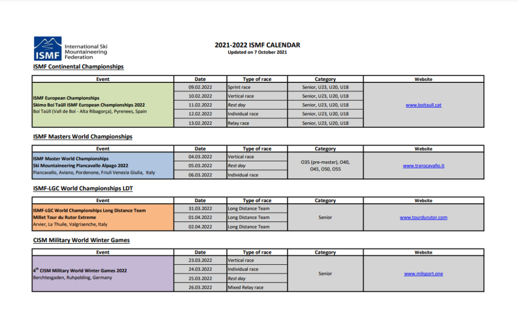 La Copa del Món d’Esquí de Muntanya comprarà amb les següents etapes: