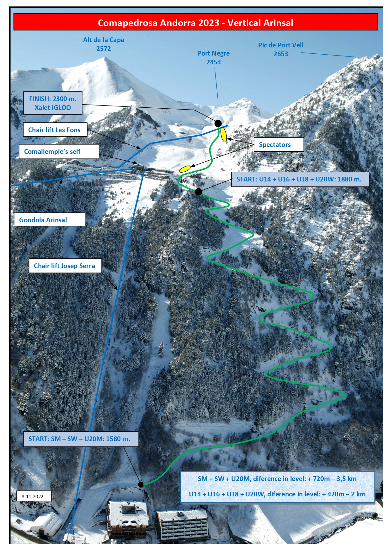 La Vertical Arinsal és la última prova de la Comapedrosa Andorra. El recorregut vertical Comapedrosa és molt especial per als participants, ja que es realitza integralment per la pista d’esquí, la qual cosa permet als esportistes donar el 100% sense que es generi cap interferència durant la progressió. Això la converteix en una cursa única i molt atractiva tant per als corredors com per als espectadors de Comapedrosa Andorra World Cup.
